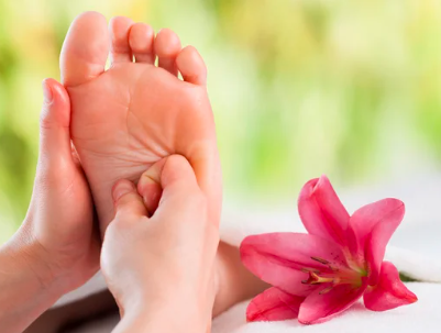 La réflexologie plantaire est un massage des pieds qui stimule des zones précises appelées points réflexes, chacune liée à une partie du corps (organe, glande, etc.).